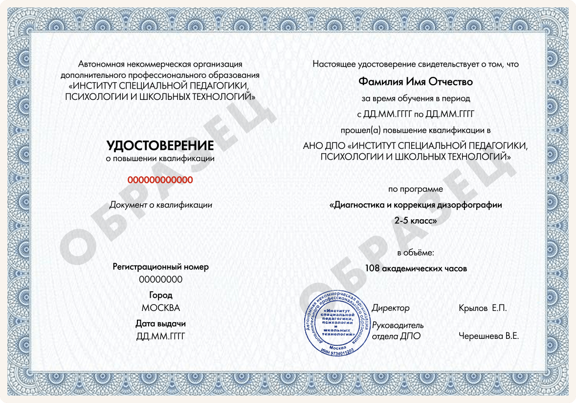 Удостоверение о повышении квалификации установленного образца. Требования для получения: